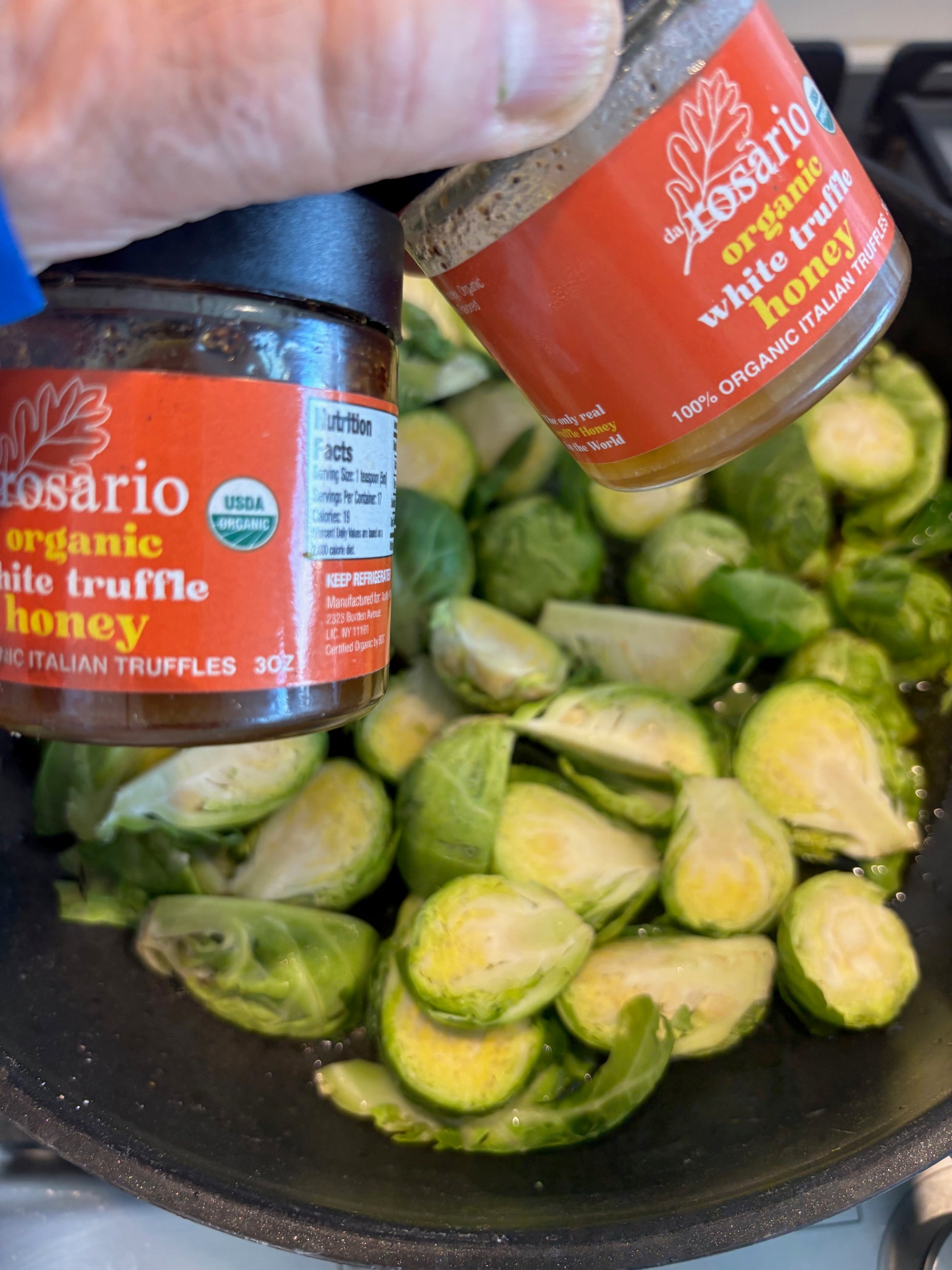 Ingredients: Organic Wildflower Honey, Organic White Truffle Pieces, Organic White Truffle-Flavored Extra Virgin Olive Oil